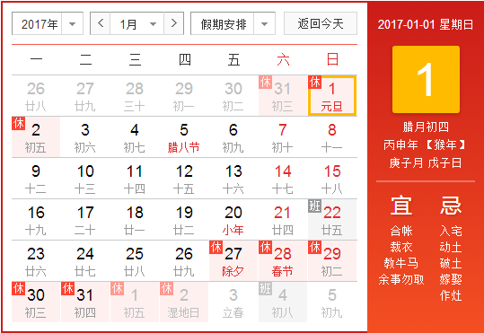 根據(jù)國(guó)務(wù)院辦公廳12月1日發(fā)布《國(guó)務(wù)院辦公廳關(guān)于2017年部分節(jié)假日安排的通知》,我公司2017年元旦放假安排如下: