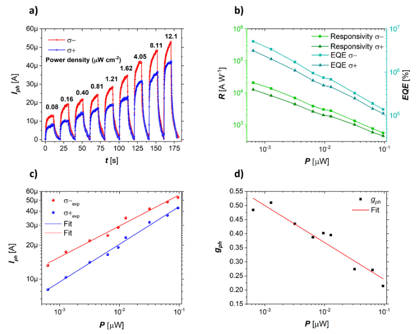 +,藍(lán)球)圓偏振500±5 nm激光器測量的自旋極化光電流的功率依賴性響應(yīng)。(b)采用σ