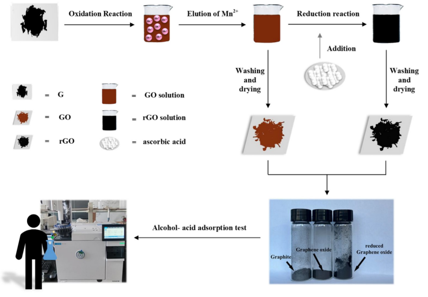 圖1. GO和rGO制備以及吸附和分析的流程圖。