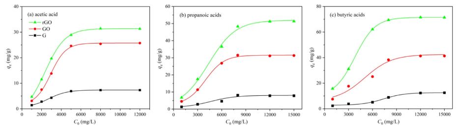 圖8.G、GO和rGO的 C2-4酸C
