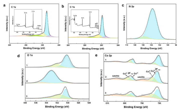 4 (c)的Si 2p光譜(插圖是測(cè)量XPS光譜)。(d,e):Co