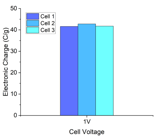 (C) 1 V充電后拆解的三組相同超級(jí)電容器正極與負(fù)極的陽(yáng)離子吸附量;