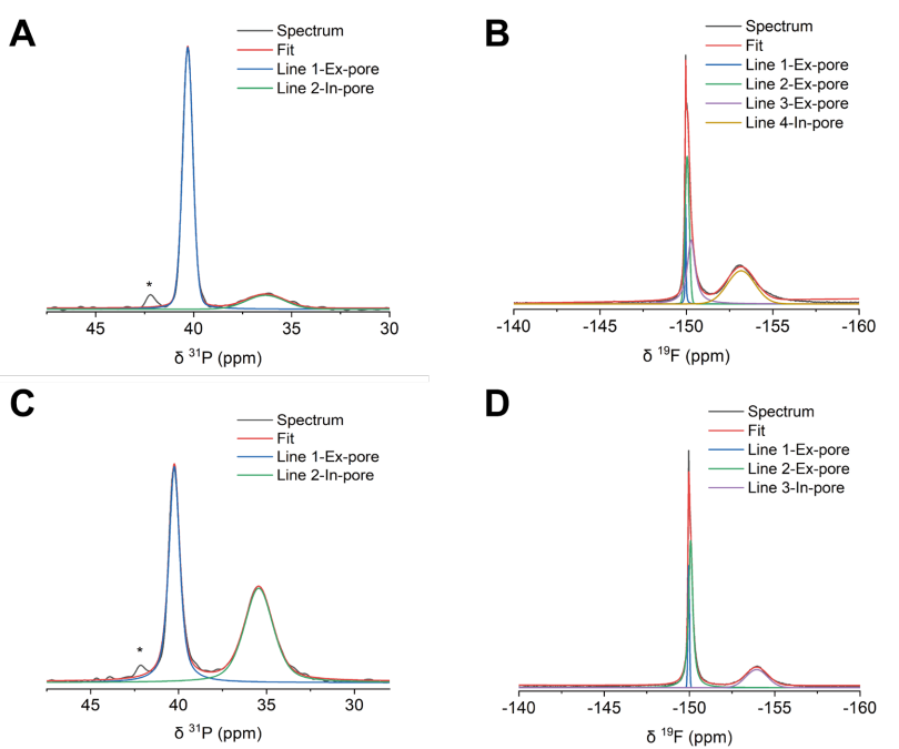 非原位MAS NMR的分峰處理展示了電極表面離子吸附的電荷分布特征,通過(guò)³¹P與¹?F核磁共振譜圖的解卷積,可量化不同電壓下電極對(duì)陰陽(yáng)離子的選擇性吸附行為。
