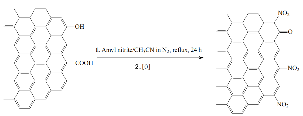 亞硝酸戊酯作為硝化試劑,可能與碳表面活性位點(如缺陷位點、邊緣碳原子)發(fā)生硝化反應(引入硝基-NO?)或酯化反應(生成C-O-NO鍵),具體路徑取決于表面電子狀態(tài)及溶劑環(huán)境;