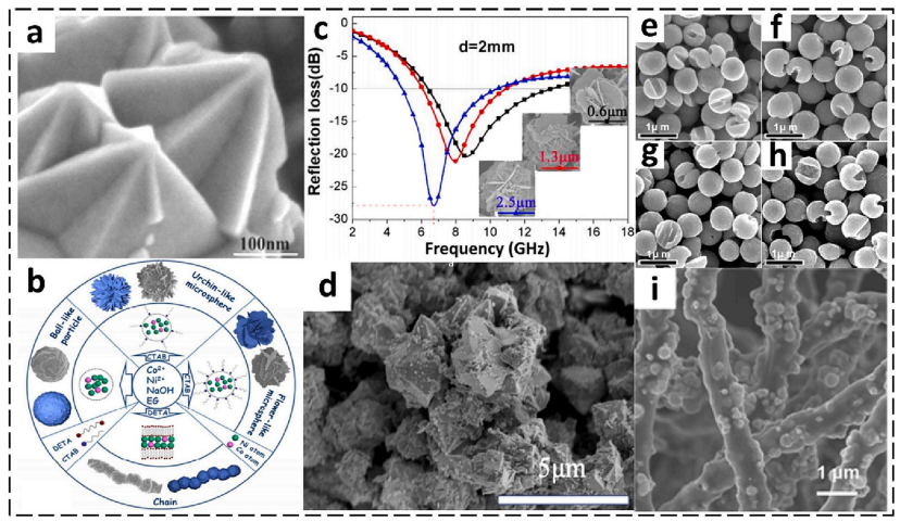 | CoNi微米花(c圖) | 尺寸調(diào)諧吸收峰 | Ku波段(12-18 GHz) | 5G基站隔離罩 |
