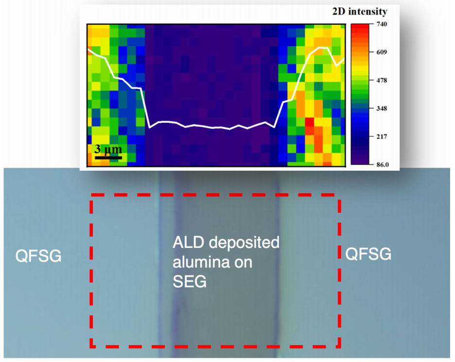 通過(guò)沉積一條80 µm寬的Al?O?條帶,并在700℃下進(jìn)行氫插層處理,成功制備SEG/QFSG無(wú)縫結(jié)。