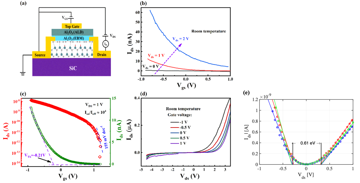 基于計(jì)算態(tài)密度(DOS)和理想介質(zhì)假設(shè)(SEG遷移率設(shè)定為4,000 cm² V?¹ s?¹),預(yù)測(cè)室溫開關(guān)比超過(guò)10?。