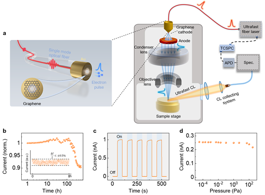 圖1光纖集成石墨烯高穩(wěn)定超快電子源及電鏡集成