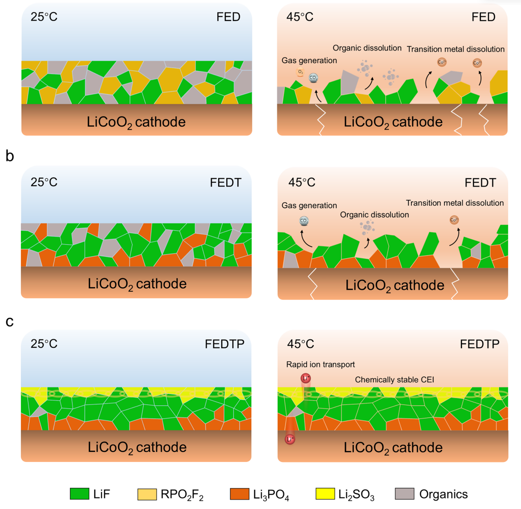 調(diào)控不同電解液在25℃和45℃下的作用機(jī)制圖