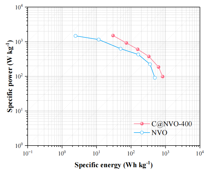 Figure S7.Figure S7.NVO和C@NVO電極的Ragone圖。